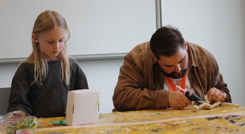 Nach der ersten Runde ging es heute etwas ruhiger im Freizeitraum zur Sache. Die letzten Dinos und Ton-Skulpturen wurden künstlerisch geformt und zum Trocknen gebracht, so dass sie Samstag noch rechtzeitig angemalt werden können.
