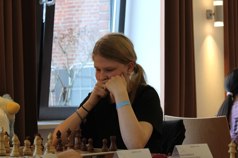 Auch in der U12w gab es direkt am ersten Tag Ergebnisse, die man so nicht unbedingt erwartet hätte. Clara Josephine Seniuk an 9 gesetzt konnte ihre Partie gegen die an 9 gesetzte Lucy Schöne gewinnen. An der Spitze sorgte dann die zweite Runde für Bewegung: Karolina Tereshchenkova setzte sich gegen Hanna Meiki Hirtzel durch, nachdem diese noch erfolgreich in das Turnier gestartet war. Dadurch ist die Situation nach zwei Runden schon deutlich offener, mehrere Spielerinnen liegen vorne dicht beieinander.