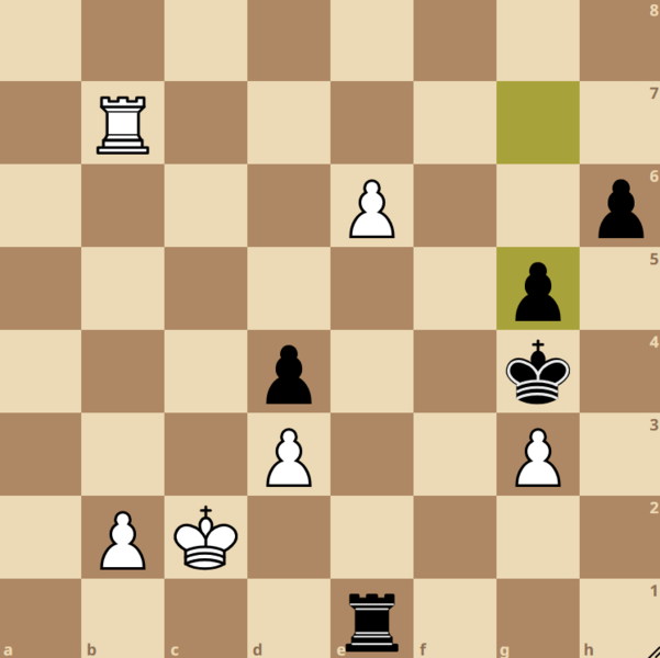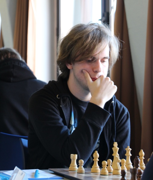 In der Nachmittagsrunde kam es an Brett 1 zum Aufeinandertreffen von Bjarne Vollbehr und Andre Petrow. Nachdem es lange so aussah, als könne Bjarne mit Vorteil ins Endspiel gehen, verlor er im Turmendspiel den Faden. Andre Petrow nutzte die Chance und setzte sich gegen den deutlich wertungsstärkeren Gegner durch. Im Diagramm unten gab es für Bjarne nur einen Zug, das Remis zu retten. Welcher war das?