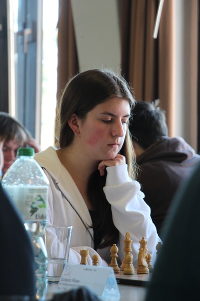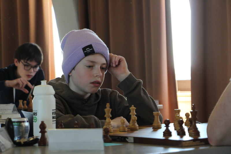In der ersten Runde des Tages standen in der U18 die Verfolgerduelle an. Bjarne Vollbehr spielte an Brett 1 gegen Julia Marie Junge. Der deutliche DWZ-Unterschied von über 430 Punkten zugunsten von Bjarne machte ihn zum klaren Favoriten. Aus der Eröffnung heraus übernahm er mit Schwarz die Initiative und erspielte sich nach und nach einen Vorteil, der sicher zum Punkt reichte. Am zweiten Brett kämpfte Justus Sommer gegen Max Lieb. Bei einem DWZ-Gefälle von über 450 Punkten konnte sich Justus durch eine bessere Behandlung der Eröffnung eine vorteilhafte Stellung erspielen, die nach 39 Zügen im Turmendspiel zur Aufgabe des Gegners führte.